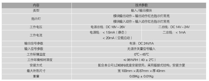 三、利達(dá)LD6800EC-1輸入輸出模塊主要技術(shù)指標(biāo)