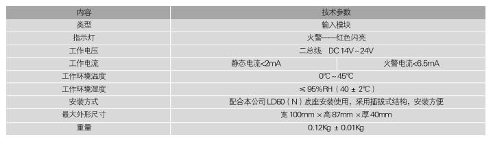 ★ 二總線,無極性。 ★ 采用電子編碼,占一個地址點。 ★ 可接收其它輸出的模擬量電壓或電流信號。 三、利達LD4410E主要技術指標
